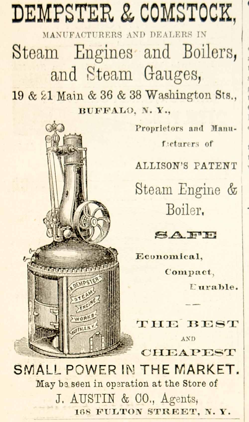 1875 Ad Antique Dempster & Comstock Steam Engines Boilers Machinery Buffalo NY