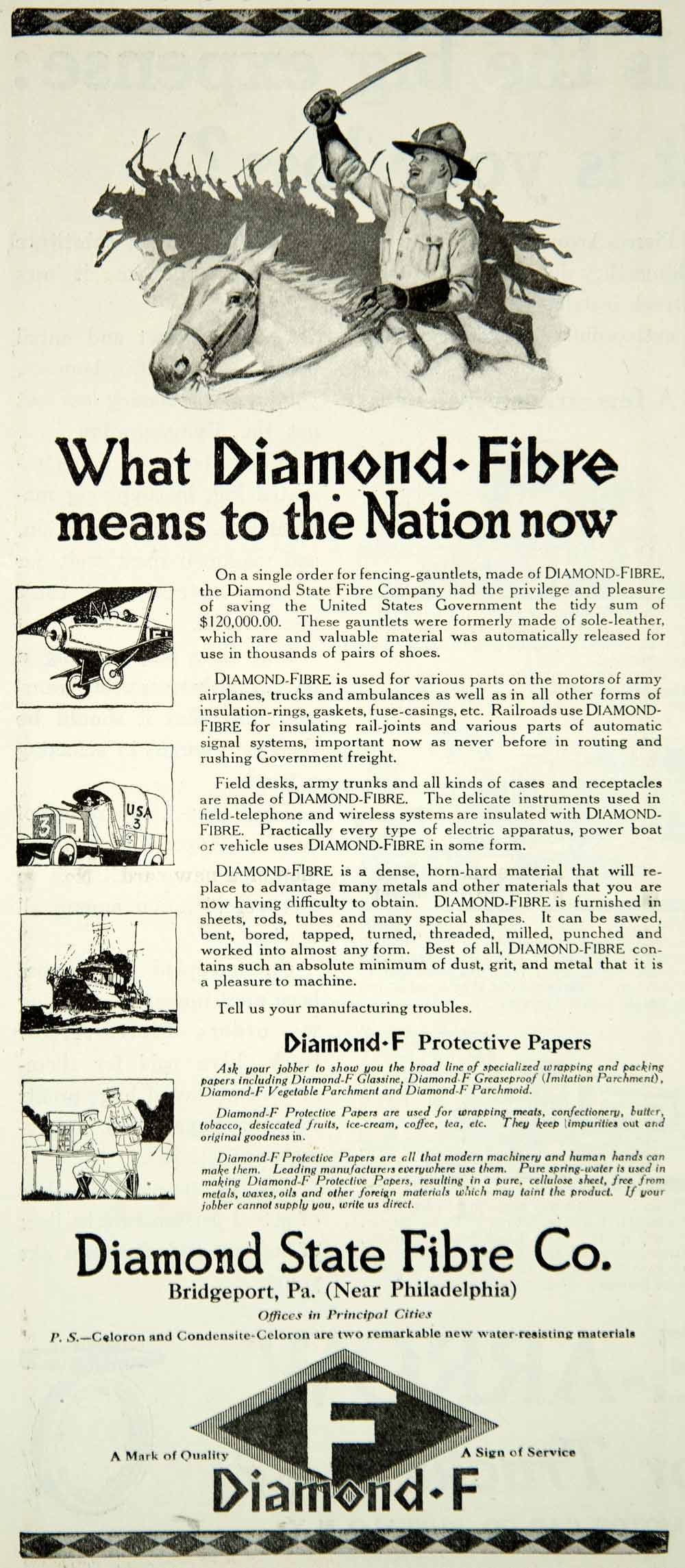1918 Ad Diamond F Protective Papers State Fibre Company Army Vehicles YLD1