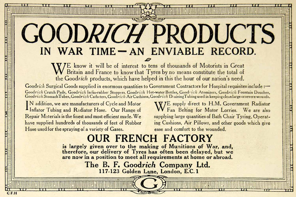1917 Ad World War I B. F. Goodrich London Wartime Products British WWI Advert