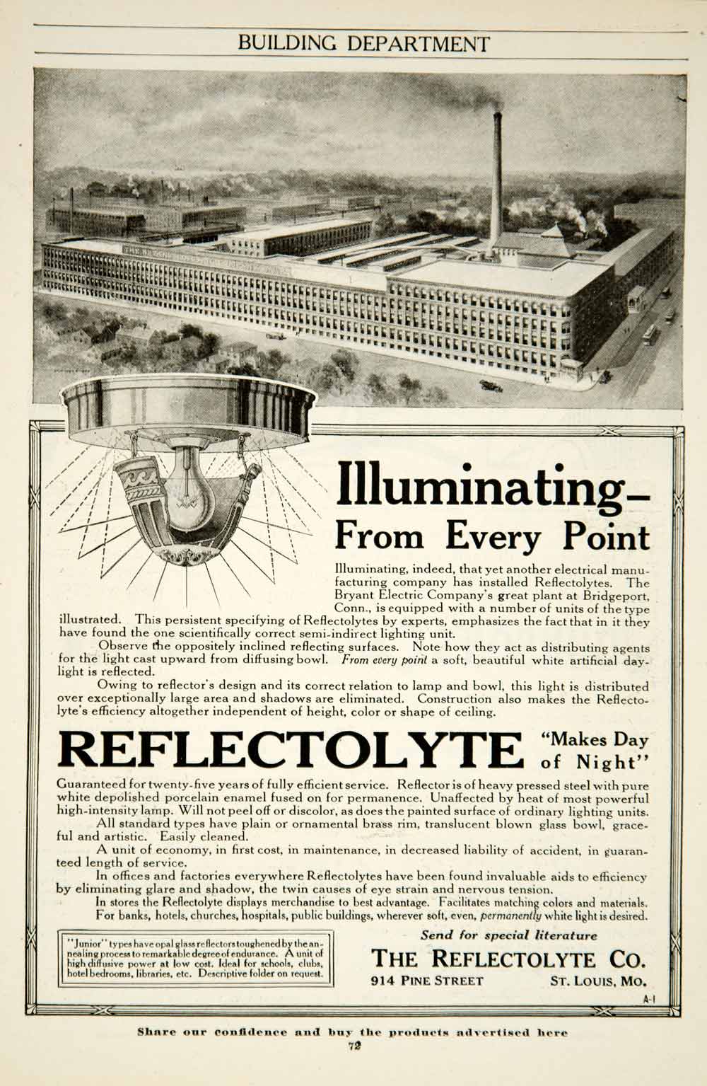 1917 Ad Reflectolyte Lighting Bryant Electric Plant Factory Bridgeport CT YRR1