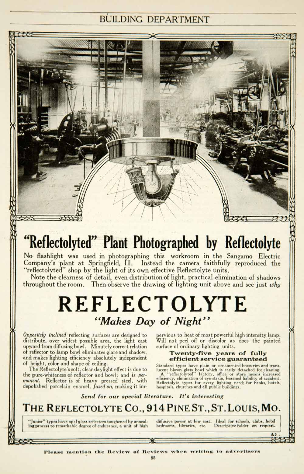 1917 Ad Reflectolyte Lighting Sangamo Electric Plant Factory Springfield IL YRR1