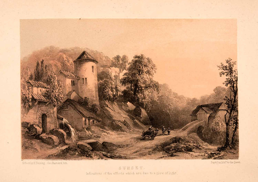 1849 Stone Lithograph Sunset Henry Twining Countryside London England XAK7