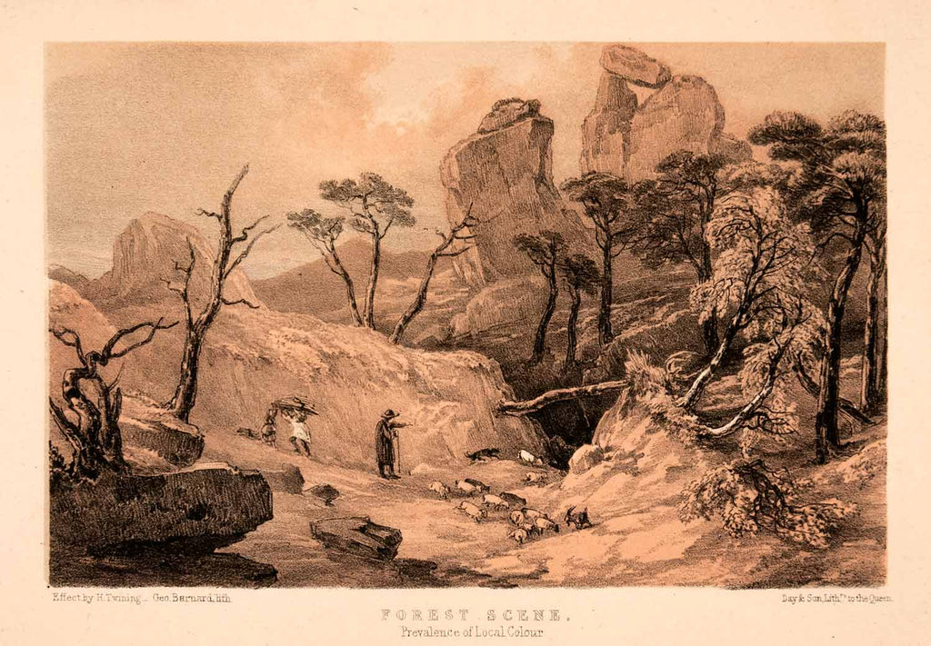 1849 Stone Lithograph Forest Scenery Henry Twining Landscape England Sheep XAK7
