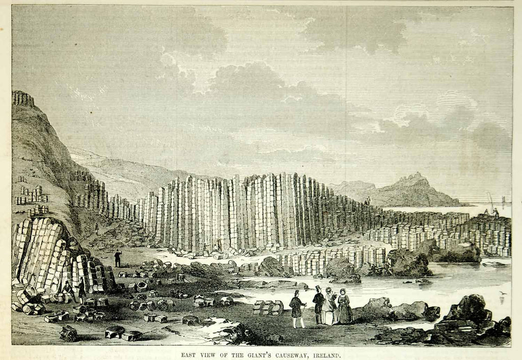 1854 Wood Engraving Giant's Causeway Ireland UNESCO World Heritage Site Basalt