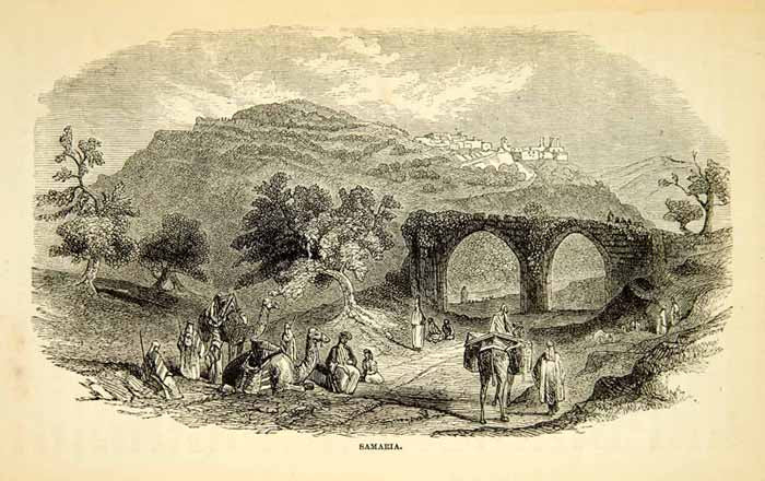 1858 Wood Engraving Art Samaria Israel Palestine Middle East Bridge XGAD7
