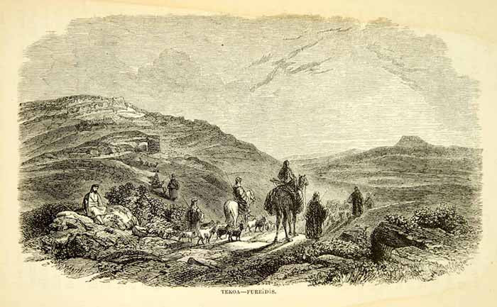 1858 Wood Engraving Art Tekoa Jebel el-Fureisdis Mountain Palestine Middle XGAD7