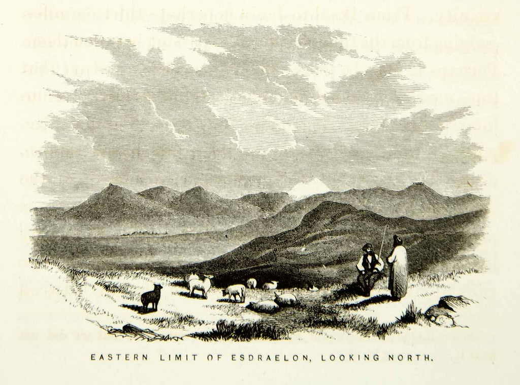 1859 Wood Engraving Jezreel Esdraelon Shepherd Mountain Landscape Sheep XGAG3