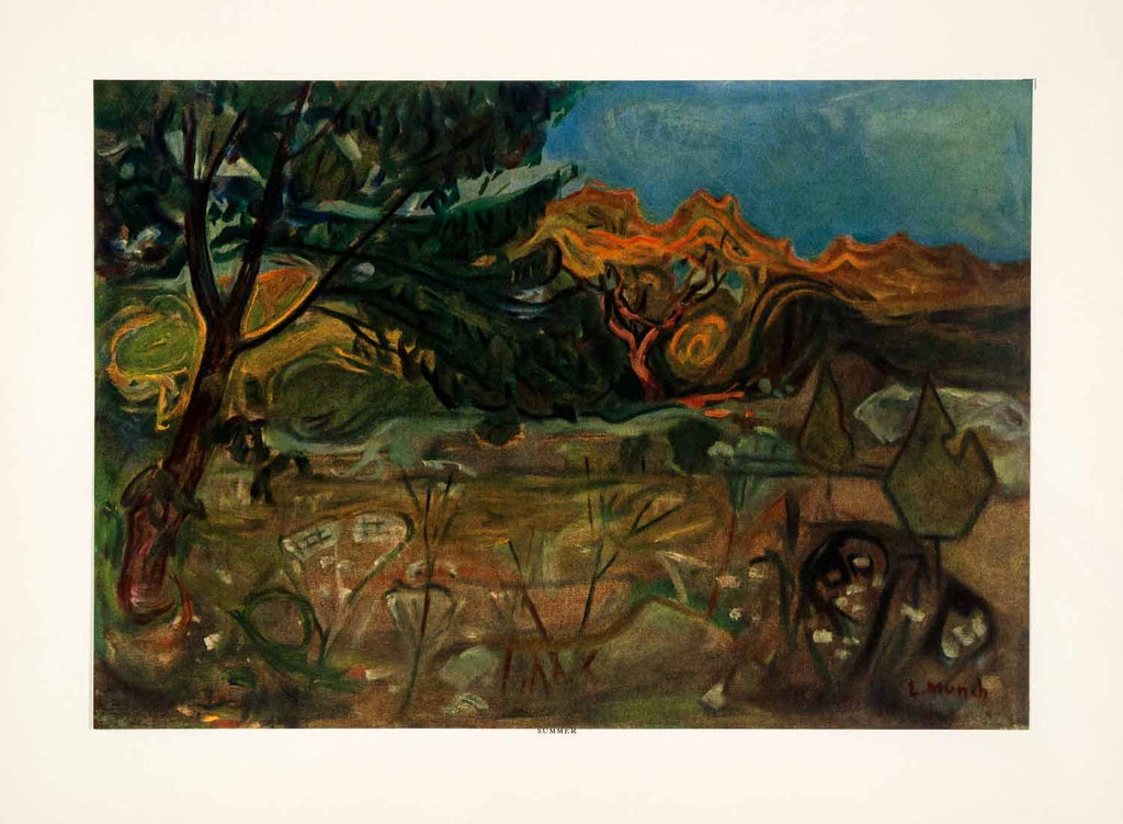 1958 Tipped-In Print Edvard Munch Summer Landscape Forest Symbolist Color Art