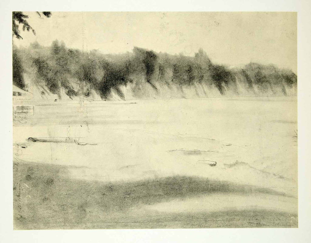 1963 Rotogravure Lake Shore Sheldrake Landscape Ocean Forest Edwin XDE1