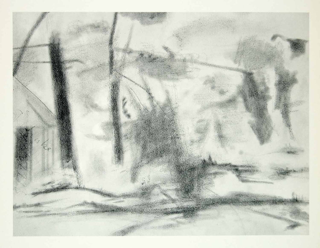 1963 Rotogravure Sheldrake Yard Landscape Scene Building Nature Edwin XDE1