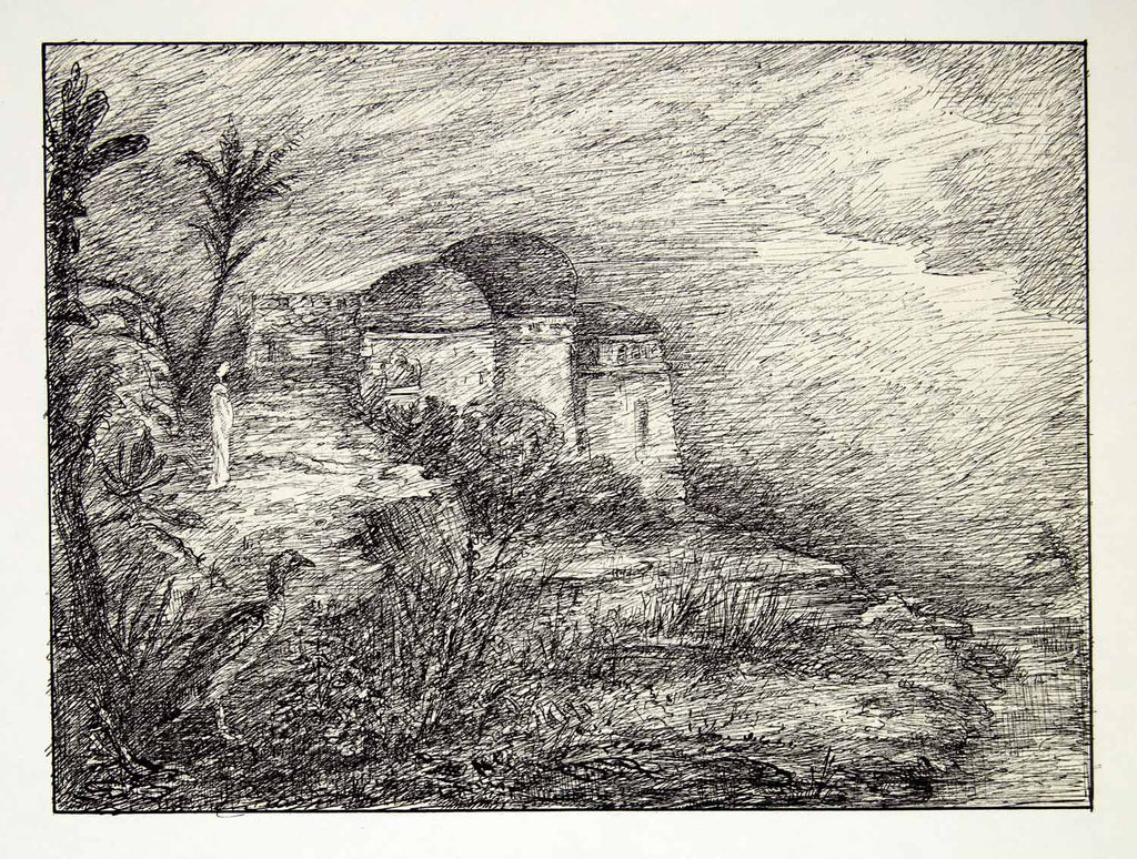1969 Aquatone Print Alfred Kubin Landscape Modern Art Sketch Balkan XDG2