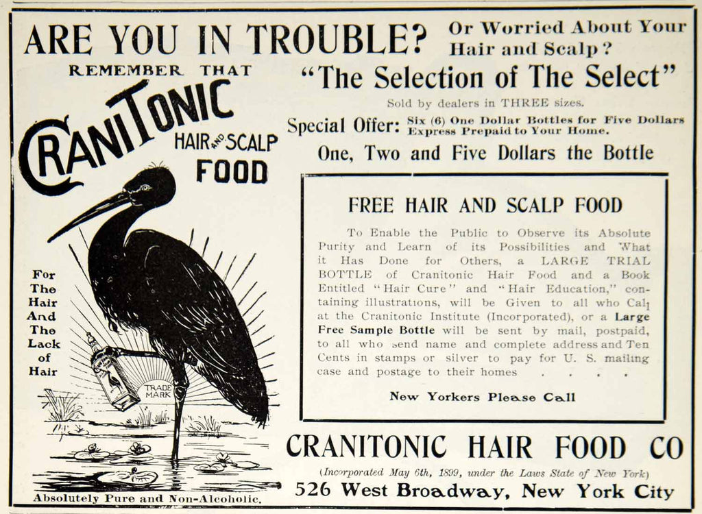 1903 Ad Vintage Cranitonic Hair Scalp Food Balding Cure Medical Quackery YSM2