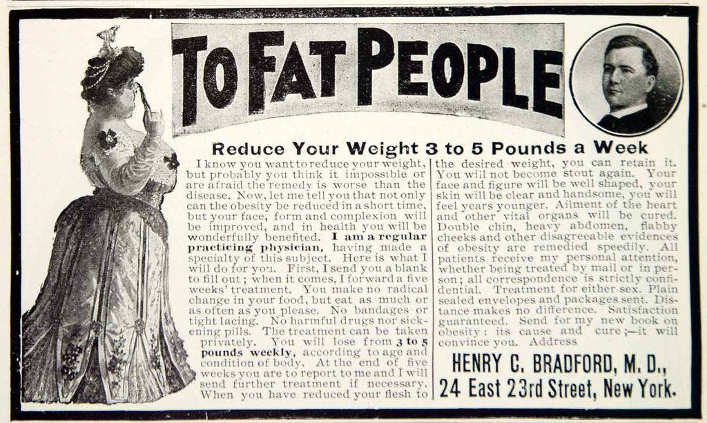 1903 Ad Vintage Weight Loss Medical Quackery Henry C. Bradford Fat People YSM2