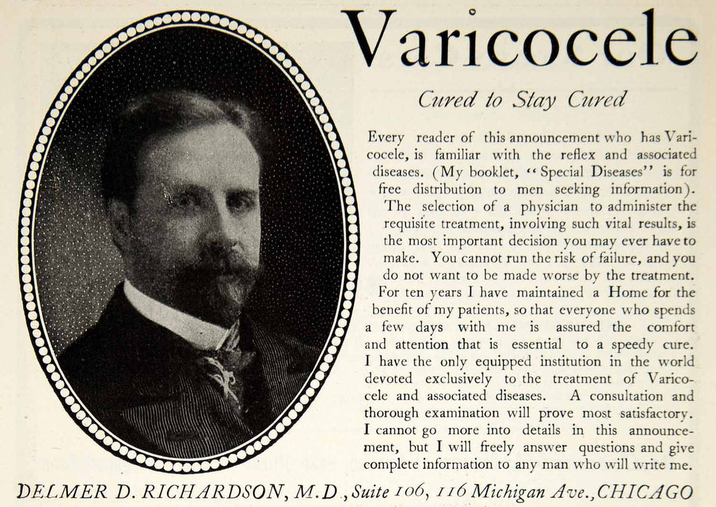 1903 Ad Varicocele Treatment Cure Medical Quackery Delmer D. Richardson YSM2