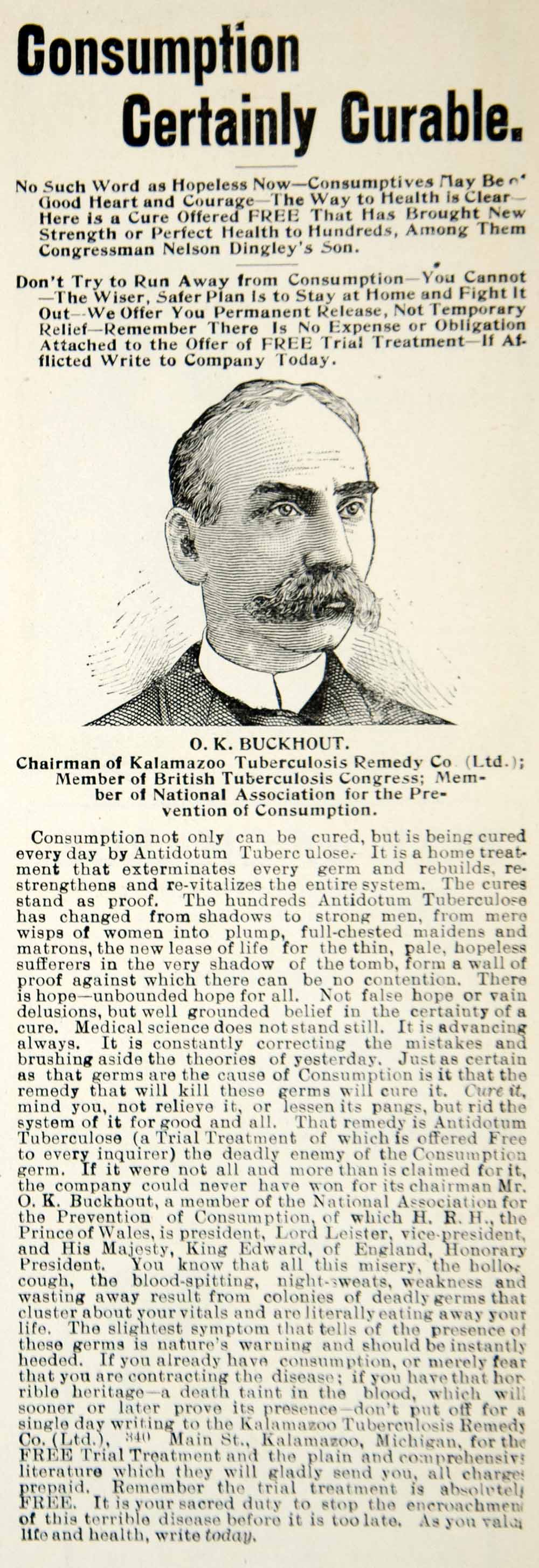 1903 Ad Tuberculosis TB Consumption Cure Antidotum Tuberculose Kalamazoo MI YSM2