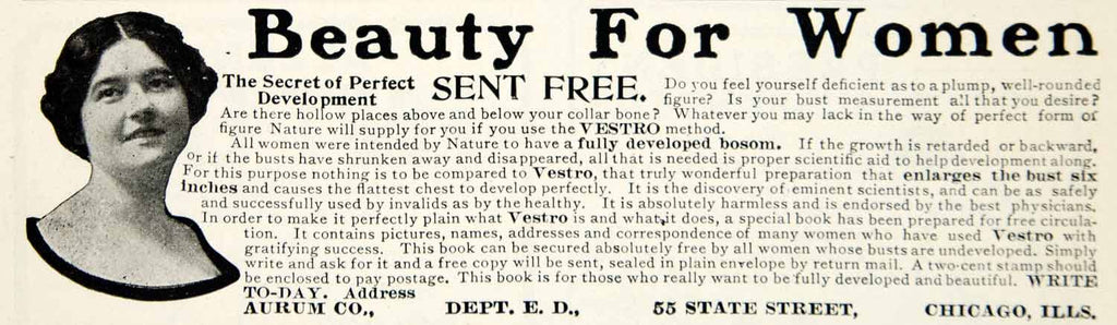 1903 Ad Vintage Vestro Bust Development Enhancement Aurum Medical Quackery YSM2