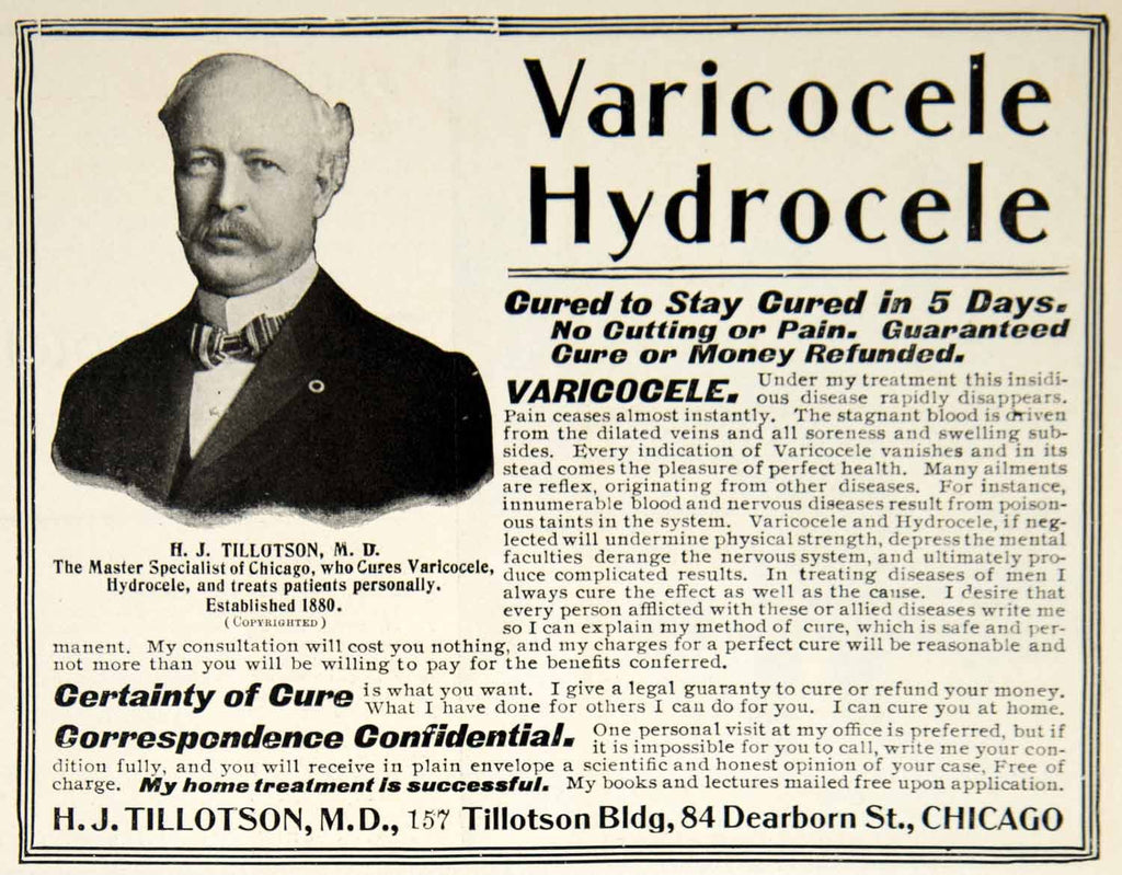 1903 Ad Vintage Varicocele Hydrocele Cure H. J. Tillotson Medical Quackery YSM2