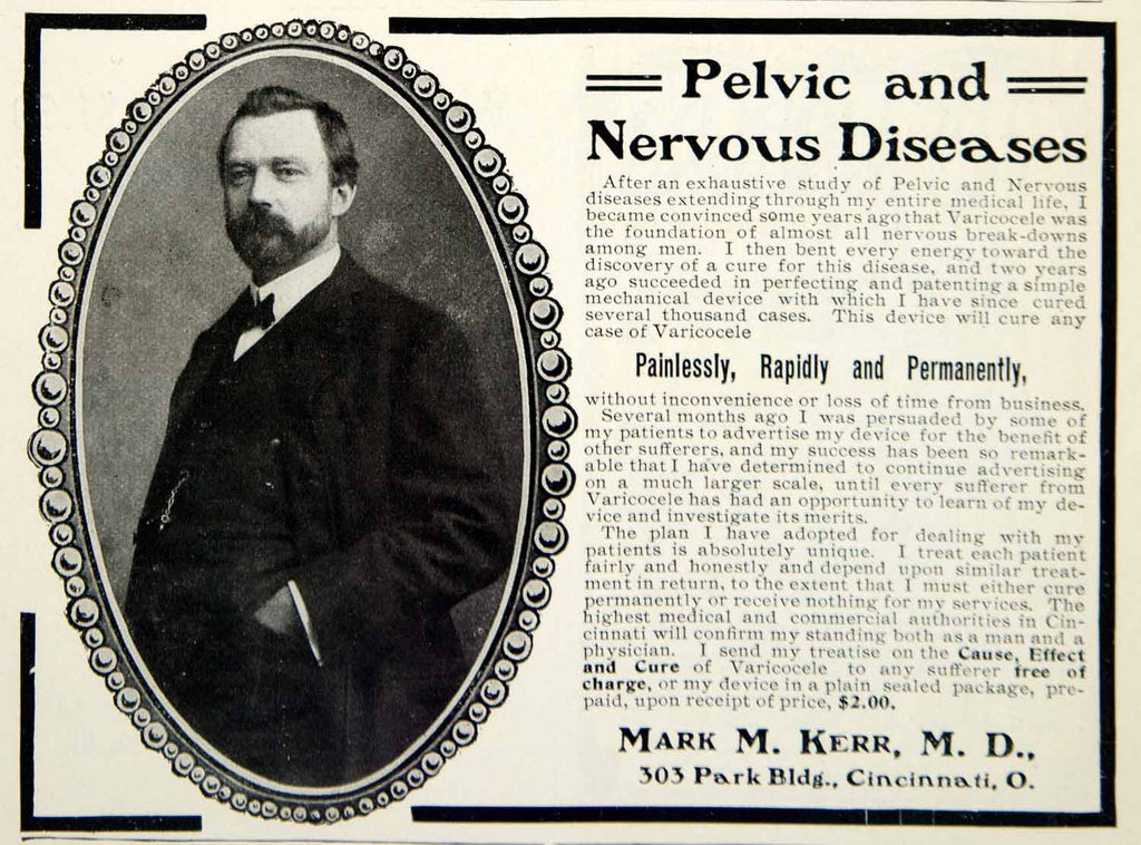 1903 Ad Varicocele Pelvic Nervous Disease Cure Remedy Mark M. Kerr Quackery YSM2