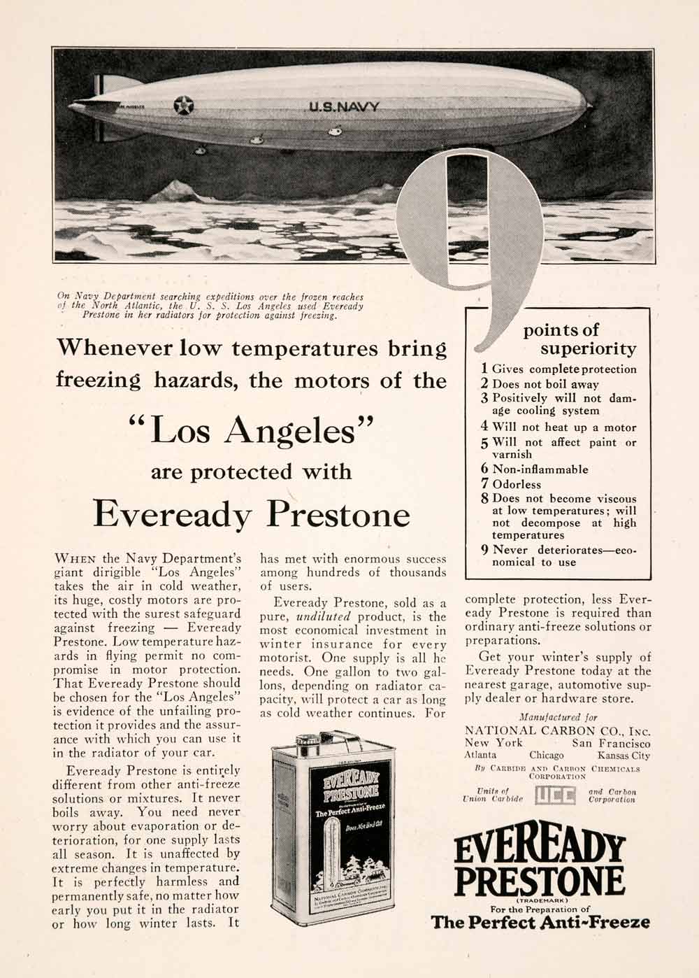 1928 Ad Eveready Prestone Anti-Freeze U. S. Navy Dirigible Airship Navy NGM3