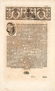 Period Paper is pleased to offer an extremely rare and impressive early eighteenth century collection of biographies and portrait engravings and etchings, produced in Leipzig, Germany in 1721 and 1722. Included are notable monarchs, rulers, religious figures, and members of notable Houses throughout Europe, including several genealogical charts of dynastic lines, spanning the sixteenth to early eighteenth centuries. The collection is comprised of exquisitely engraved and etched copper portrait plates framed by varying decorative motifs, all engraved by Johann Friedrich Rosbach. Many of the portraits include separate biographical pieces ranging in length from a single paragraph to several pages for more notable European monarchs and emperors. If present, the accompanying text is in German and is composed of beautiful woodcut text, with most pages containing elegantly etched drop cap initials, head-and tail-pieces and vignettes. The superb, folio-sized stock upon which the collection is engraved and etched employed the latest advances in eighteenth century paper making and highlights the era's predilection for strong, lightly sized paper with a fine structure and smooth surface. The paper's characteristics are thus similar to Japanese Gampi, and the result is well-preserved and crisp images that exceptionally capture Rosbach's fluid and sharp line work. This collection represents a unique opportunity to collect a valuable part of European history stunningly composed and illustrated.