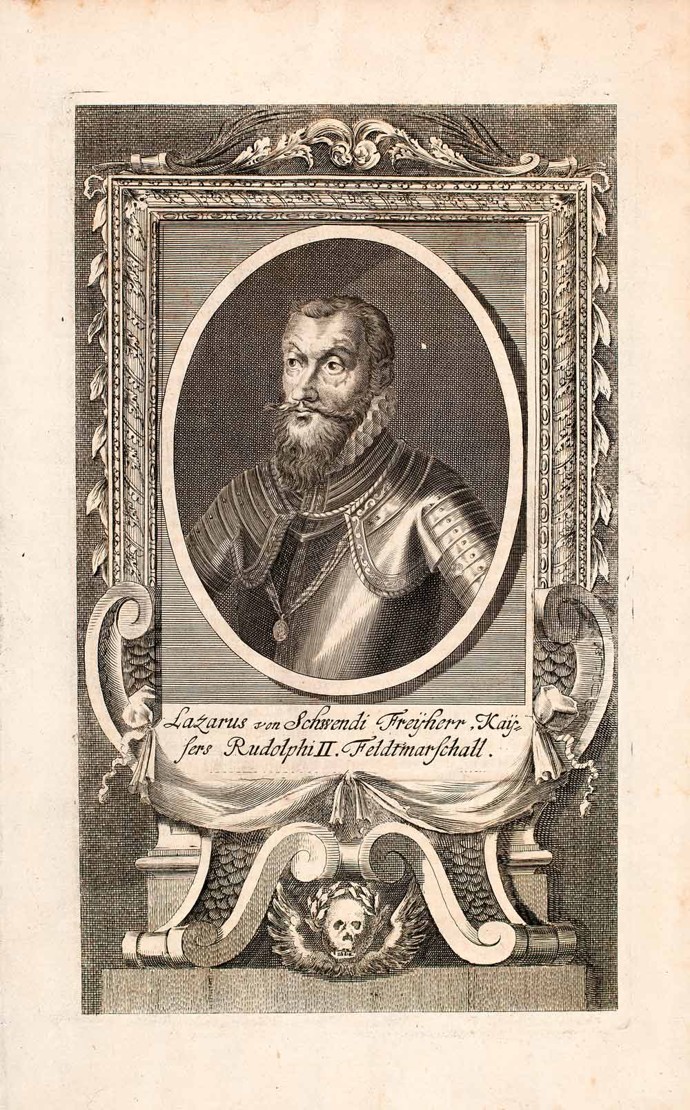 1721 Copper Engraving Portrait Lazarus Schwendi Baron Imperial Captian EUM3