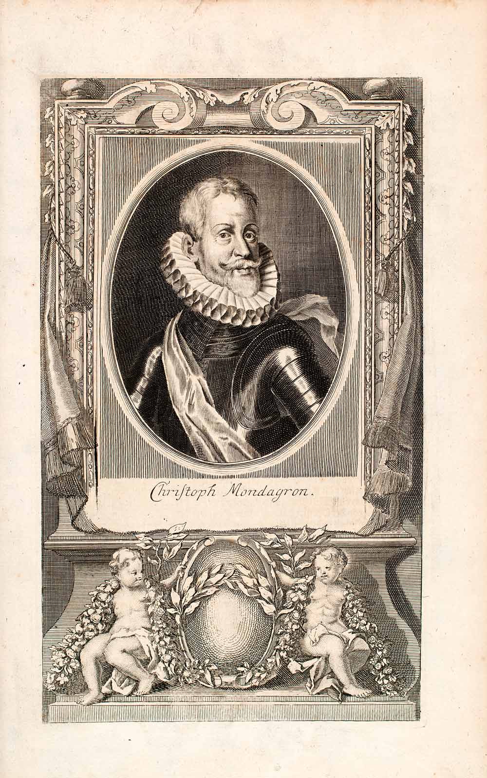 1721 Copper Engraving Portrait Christopher Mondagron Royal Spanish General EUM3