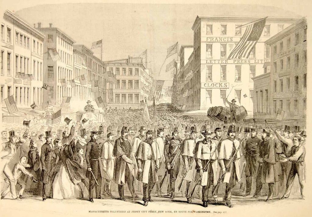 1861 Wood Engraving Massachusetts Volunteers NYC Union Soldiers Civil War NYN1