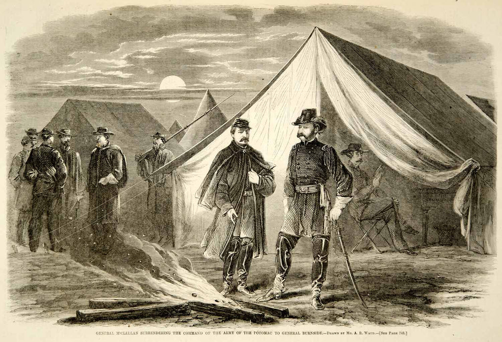 1862 Wood Engraving Alfred Waud Gen George McClellan Ambrose Burnside Civil YHW2