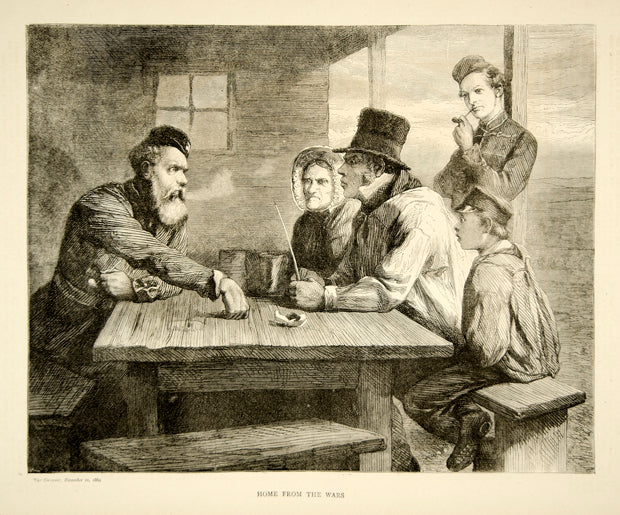 1869 Wood Engraving George Thomas Art British Soldier Home Wars Family YTG1