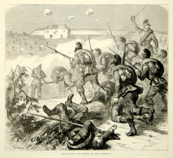 1870 Wood Engraving Art Franco-Prussian War Storming Bicetre France YTG1