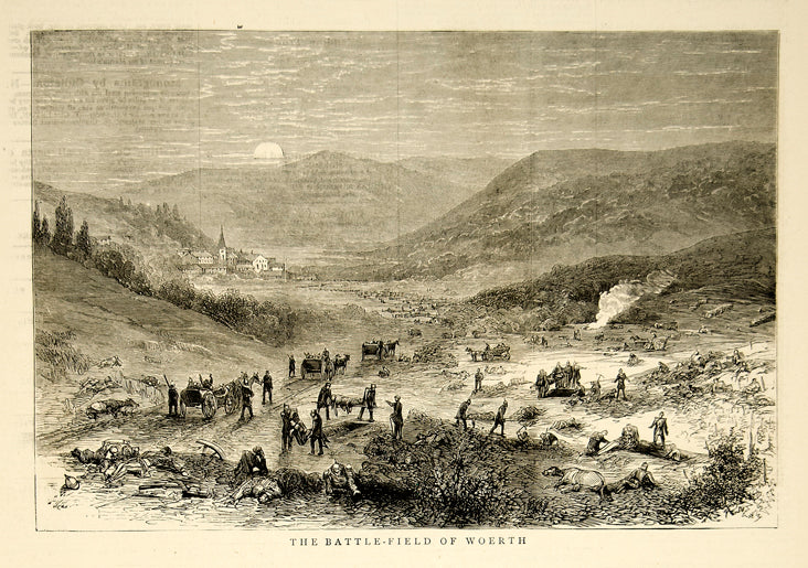 1870 Wood Engraving Battlefield Franco-Prussian War Woerth Wounded Dead YTG1