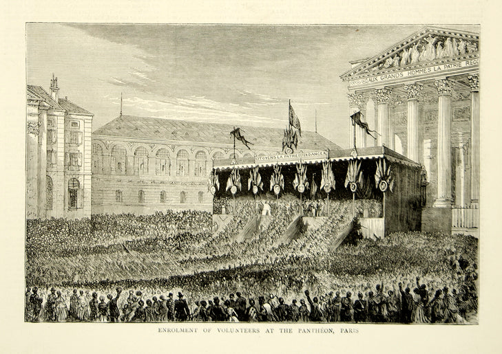 1870 Wood Engraving Enrollment Pantheon Paris National Guard Franco YTG1