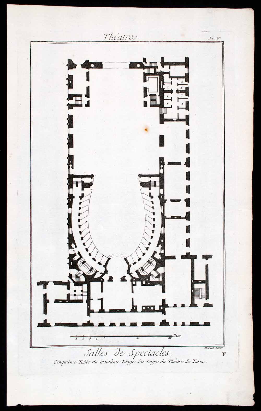 1770 Copper Engraving Architectural Plan Fifth Floor Teatro Regio Turin RDP1