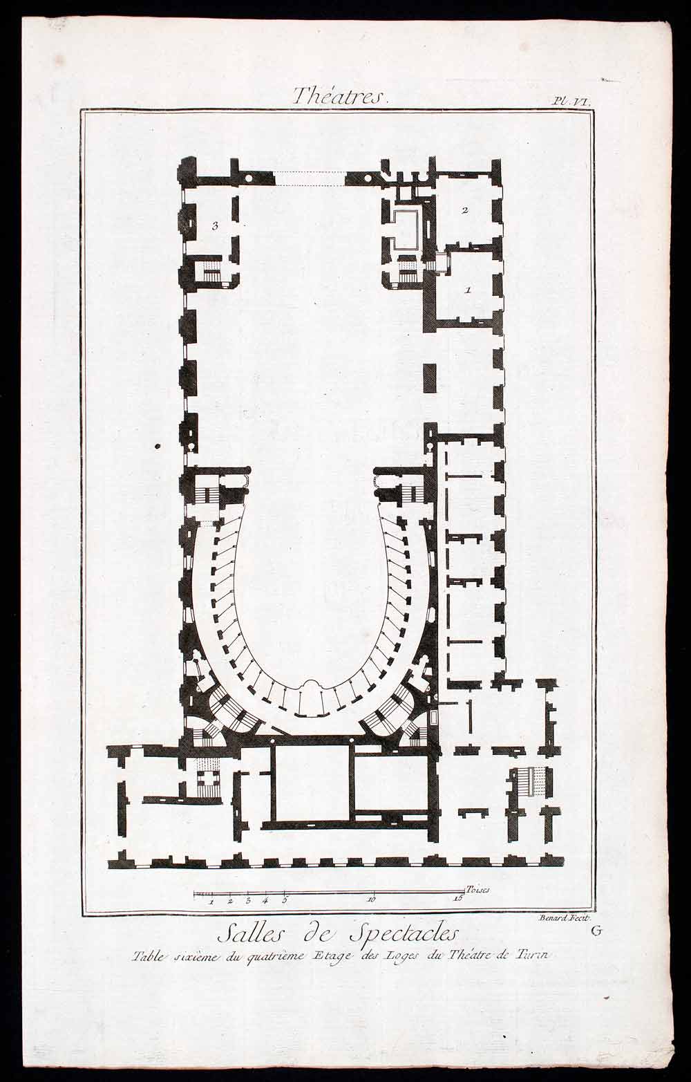 1770 Copper Engraving Architectural Plan Sixth Floor Boxes Teatro Regio RDP1