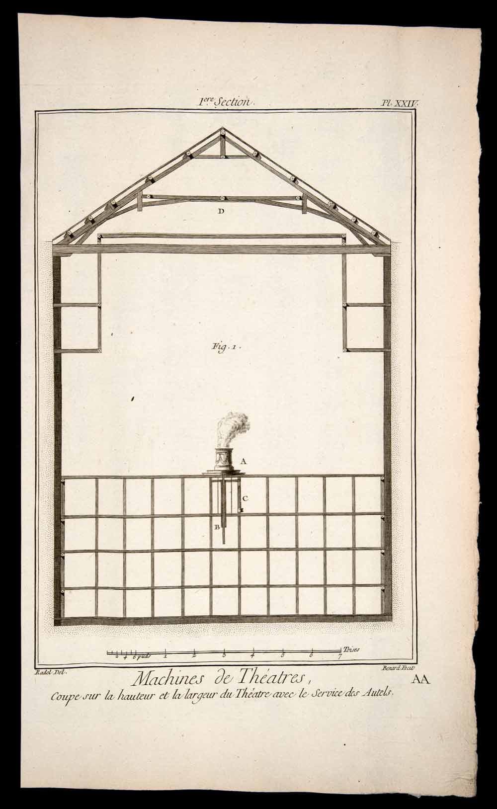 1770 Copper Engraving Architectural Section Altar Stage Set Salle Machine RDP1