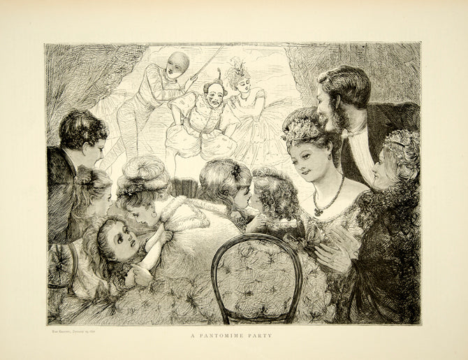 1870 Wood Engraving Art Pantomime Party Stage Musical Actor Costume YTG1