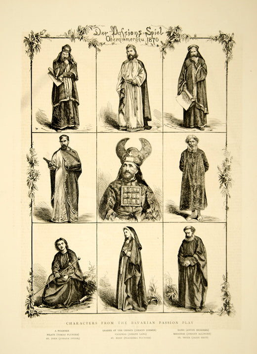 1870 Wood Engraving Art Oberammergau Bavarian Passion Play Pharisee Saint YTG1