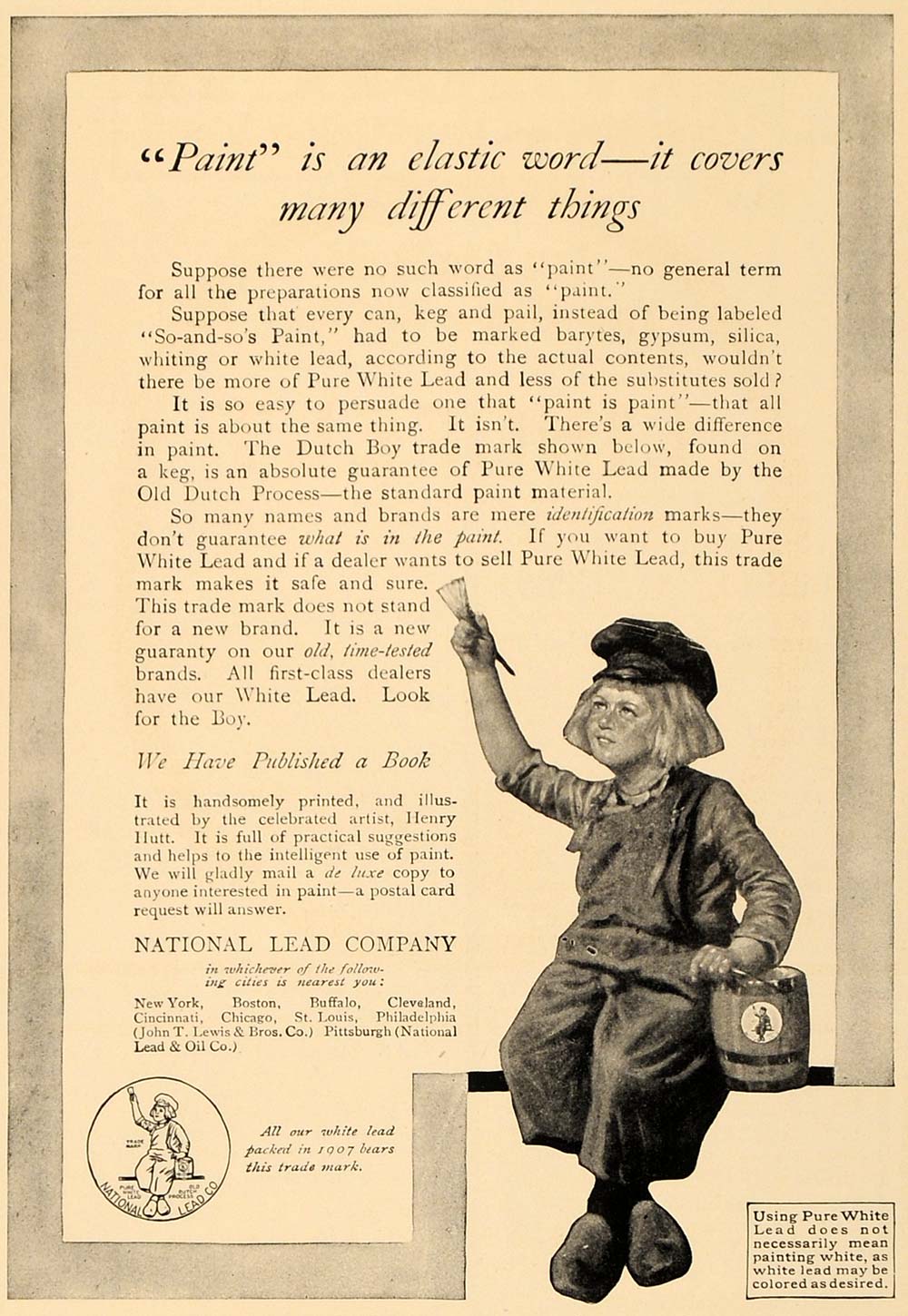 1907 Ad National Lead Paint Pure White Dutch Boy - ORIGINAL ADVERTISING CL4