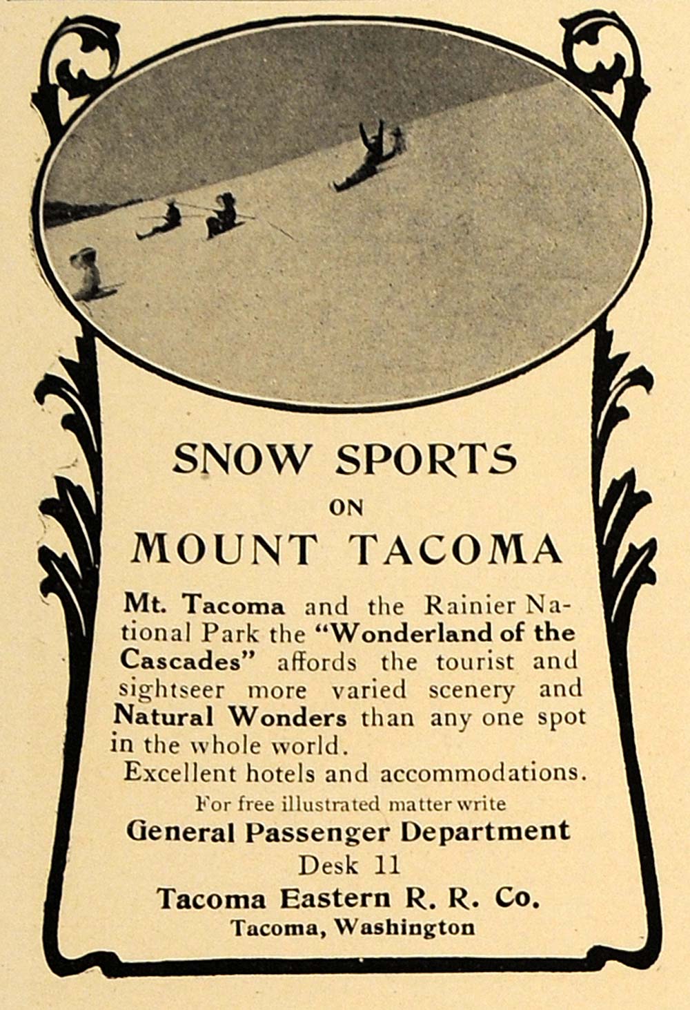 1907 Ad Mt Tacoma Eastern R.R. Snow Sports Rainier Park CL8