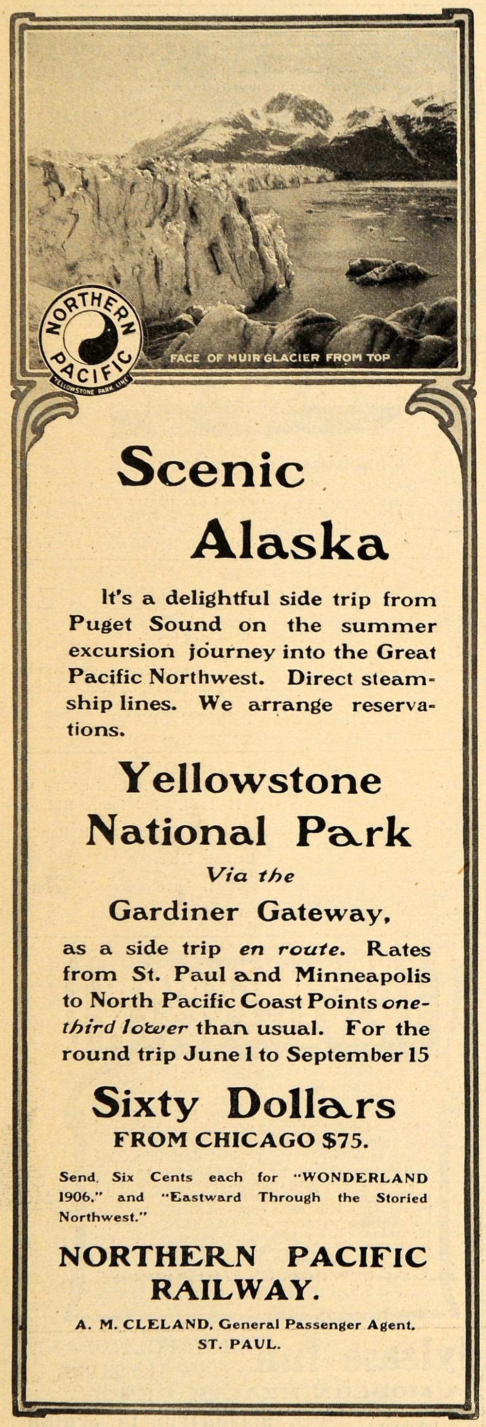 1906 Ad Northern Pacific Railway Logo Yellowstone Park - ORIGINAL TIN5