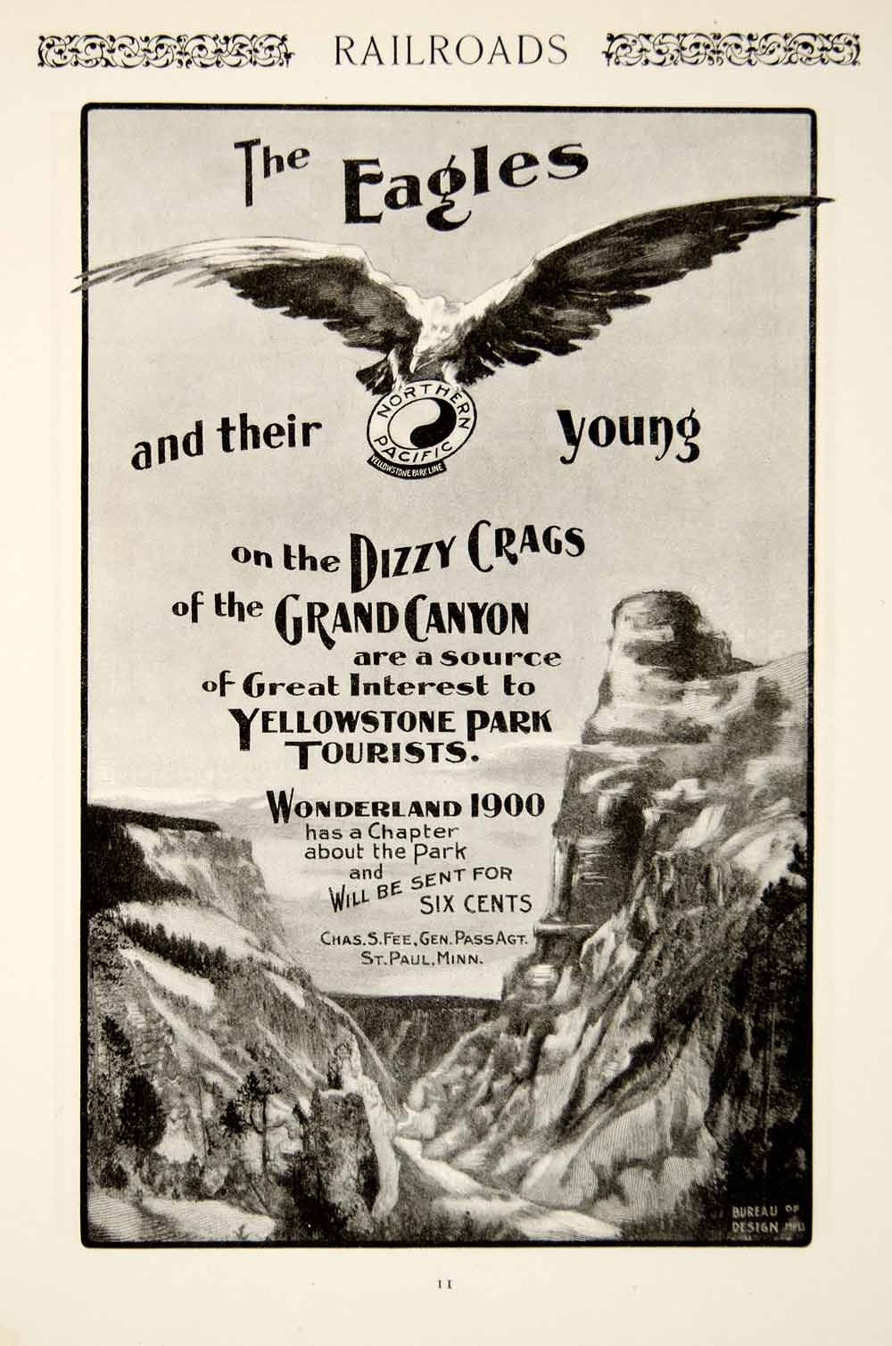 1900 Ad Northern Pacific Railway Railroad Travel Yellowstone Park Eagles YSN2