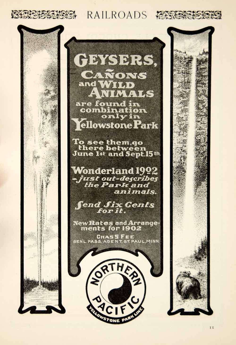 1902 Ad Yellowstone Geyser Park Line Northern Pacific Railway Train Travel YSN2