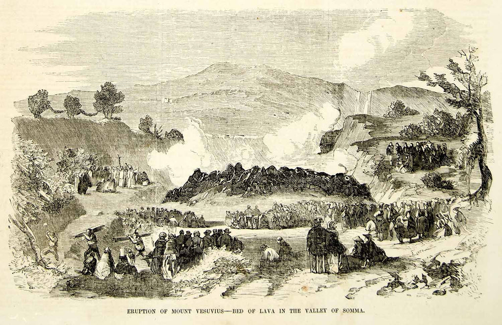 1855 Wood Engraving Eruption Mount Vesuvis Somma Valley Natural Disaster BP1