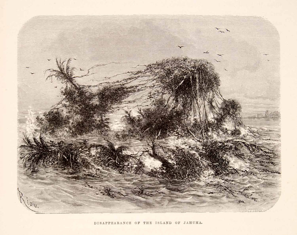 1875 Wood Engraving Island Jahuma Amazon River South America Rainforest XGHC1