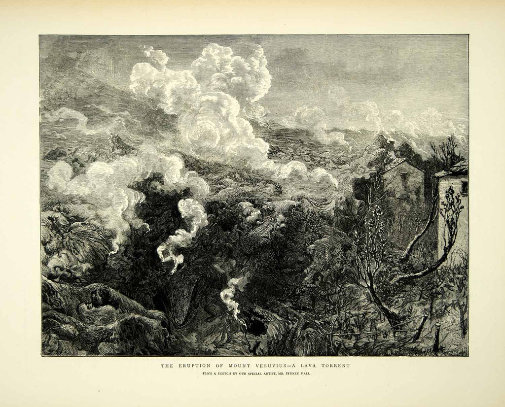 1872 Wood Engraving Sydney Hall Art Eruption Mt Vesuvius Italy Lava Flow YTG4