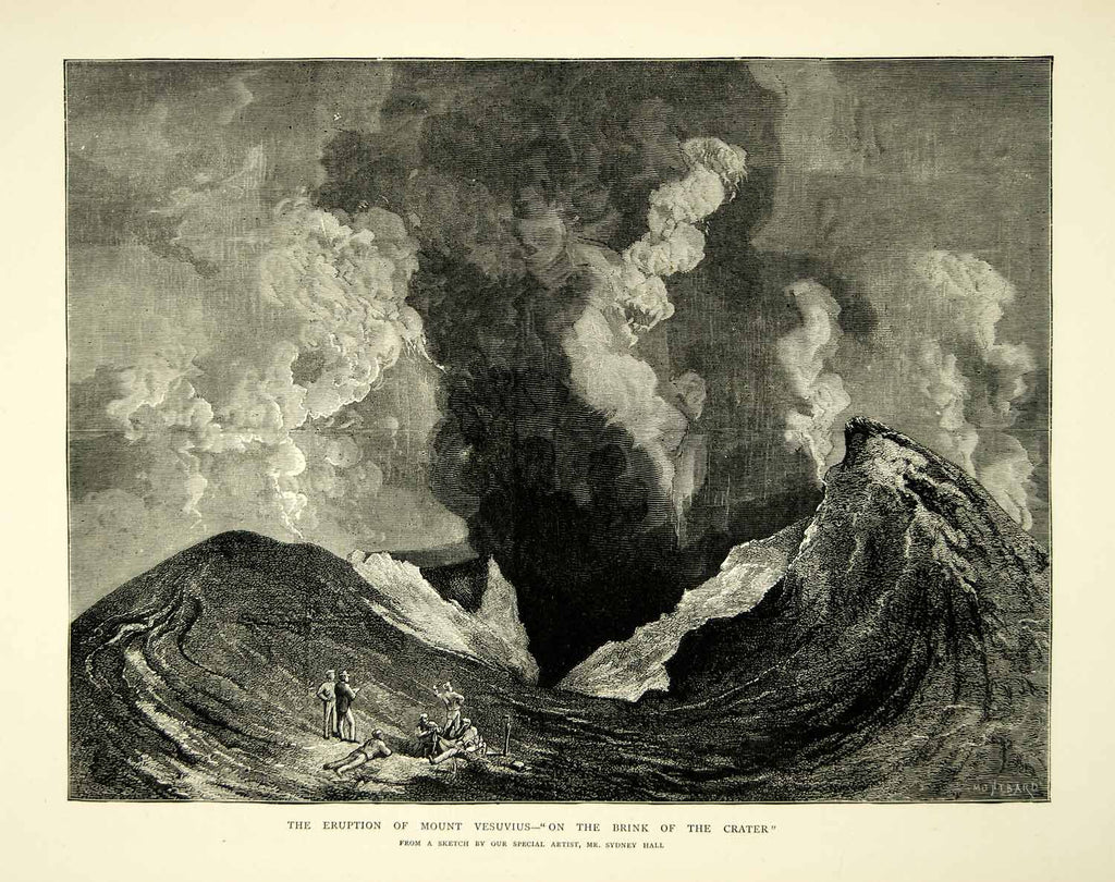 1872 Wood Engraving Sydney Hall Art Mt Vesuvius Crater Volcano Eruption YTG4