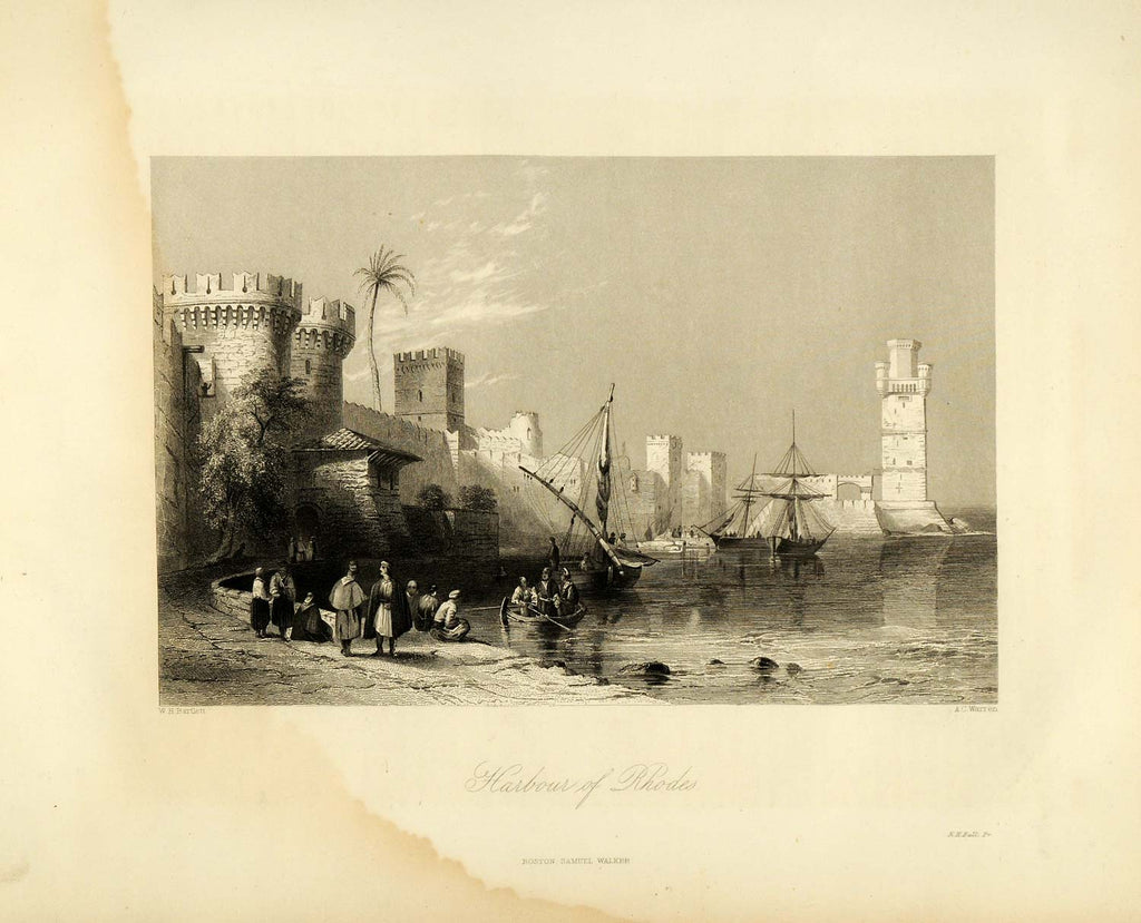 1849 Copper Engraving Rhodes Greece Biblical Bible Religious Sailing Ship XHA2