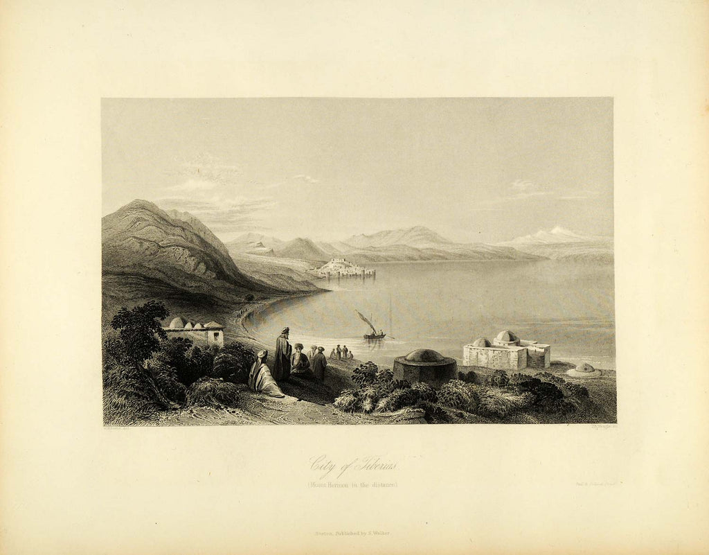 1849 Copper Engraving Tiberias Mount Hermon Israel Sea Galilee Judaism Holy XHA2