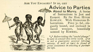 This is an original 1872 black and white print ad for a literary work of Jest and earnest instructions about marriage by the Honorary Hugh Rowley.