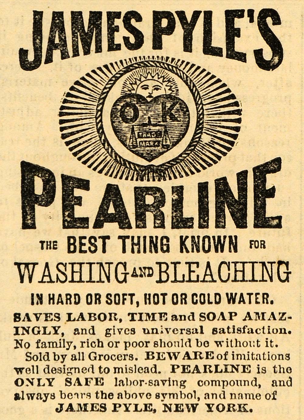 1882 Ad James Pyle's Pearline Soap Washing Detergent - ORIGINAL ADVERTISING TIN6
